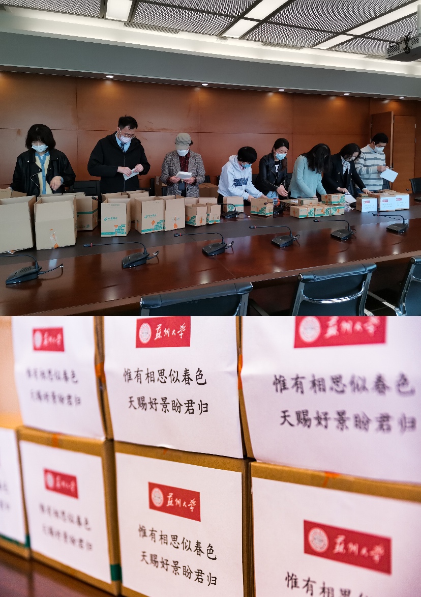 在校教职工纷纷助力口罩打包和快递寄送,苏大“健康包”火速出发!