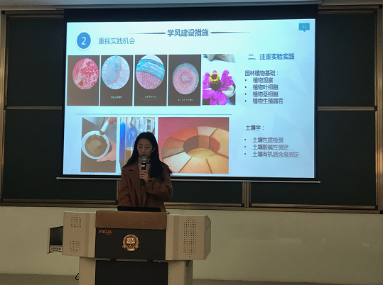 首先汇报的是2017级城乡规划班,从鼓励同学参加科研项目、学术竞赛,完善内部考勤制度,组织团建活动提升凝聚力等方面介绍了本班在学风建设方面做出的努力,并展示了本班课程出勤、作业质量、获奖状况、学习氛围等情况。随后其他班级依次展开汇报,各显神通,各有精彩,例如15园林班建立班级交流群、微信公众号线上交流学习;16规划班建立班委“责任制”,“生日委员”定期组织聚会送祝福,提升班级凝聚力;17建筑一班建立学习资料共享机制,推动学习小组交流互助;16建筑二班通过思想引领,指定职业生涯规划,发挥榜样示范作用;17园林一班把班级大事记做成一本书的形式,回忆了班级取得平均绩点3.58背后的点滴;15城规班从班级“规”、“合”、“联”、“创”四个方面发力,学风促团建,助力班级荣获江苏省先进班集体、苏州市五四红旗团支部等荣誉。