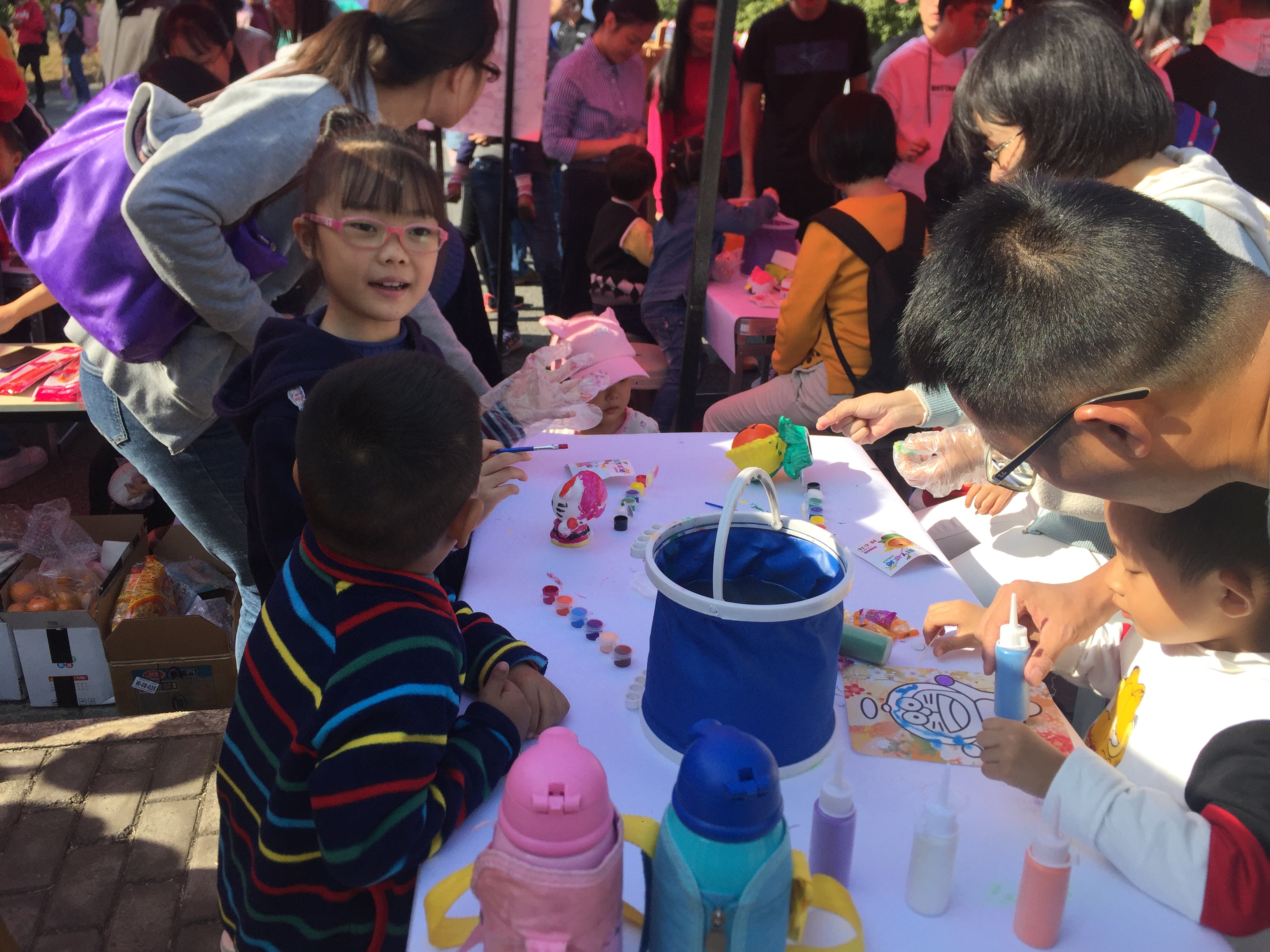 此次活动还邀请到了独墅湖幼儿园和翰林幼儿园的小朋友来参观,他们用沙土堆砌自己的城堡,在陶罐上铺满亮丽的色彩,他们将自己的天真活泼带到这里,这里也开启了他们建筑的启蒙之旅,家长们也参与其中,老少同乐。