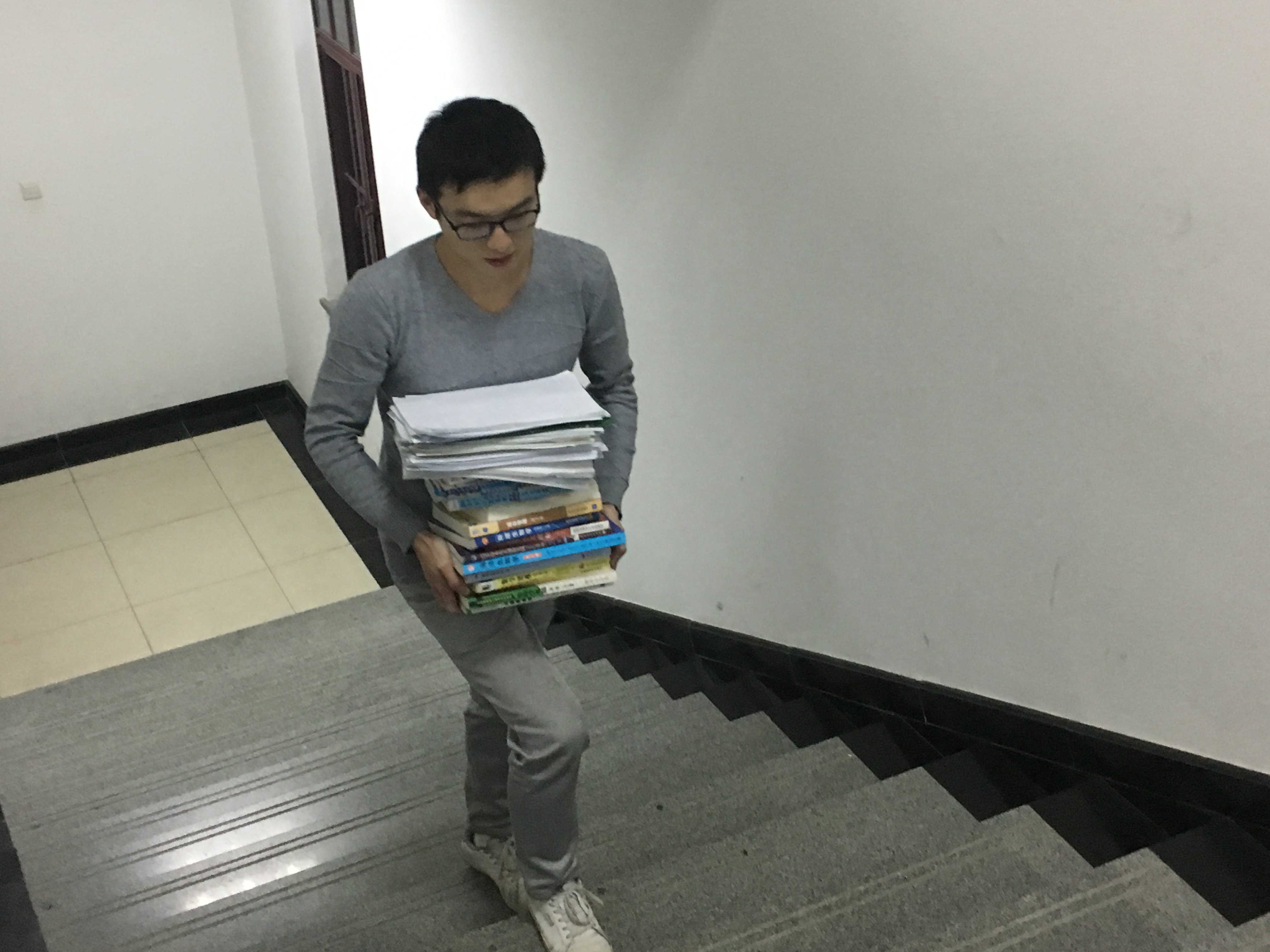 刚开始团队三名成员中只有张书安一个男生,他包揽了所有的收书搬书的体力活,楼上楼下跑,挨个宿舍募集书籍。有一次因为过度劳累,导致左臂脱臼,手臂刚复位的第二天,又急忙跑去毕业生宿舍收集书籍了。