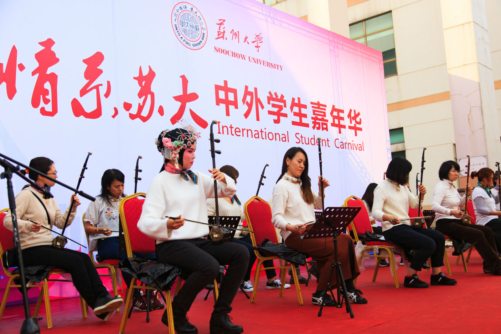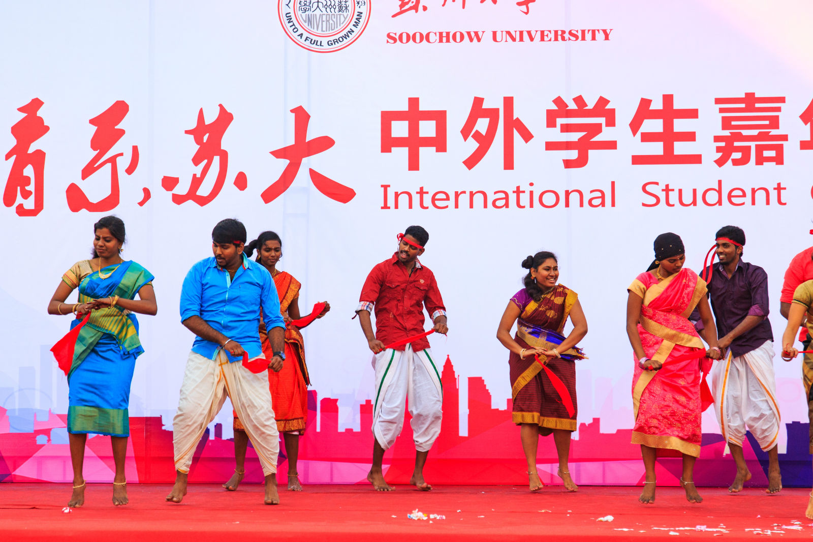 11月18日下午,由leyu.com·(中国)官方网站海外教育学院主办,校内多个学院和职能部门以及钟楼社区、苏州工艺美院等多家校外友好单位共同参与协办的“情系苏大”中外学生嘉年华活动在东校区举行。来自40个国家的数百位苏大留学生与中国学生齐聚现场,带来了地道的异国美食和精彩的文艺表演。