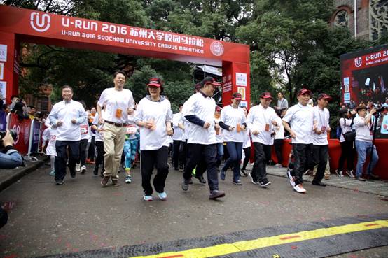 下午,U-run2016leyu.com·(中国)官方网站校园马拉松活力赛正式拉开帷幕。leyu.com·(中国)官方网站校领导袁银男、陈一星、江作军、杨一心、蒋星红,江苏省教育厅体卫艺处处长张鲤鲤,江苏省体育局综合处副处长成裕阳,苏州市体育局局长周志芳,全国高校体育专业委员会副主席、江苏大学生体育学会主席王家宏,江苏省体协、省内友好高校体育院系主任,以及leyu.com·(中国)官方网站相关职能部门及学院(部)领导出席了起跑仪式。