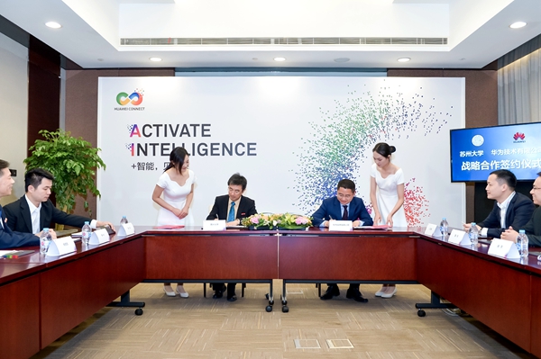 此外,苏大还将与华为开展人才联合培养,成立创新实训基地,在课程教材开发、实习实训方面开展合作。在协同创新方面,双方将共同开展科研攻关和学术交流,华为将在苏大打造以未来技术、未来产品为主题的体验馆,向师生和社会展示最新科研成果。同时,双方合作成果也将向社会联合开展推广。