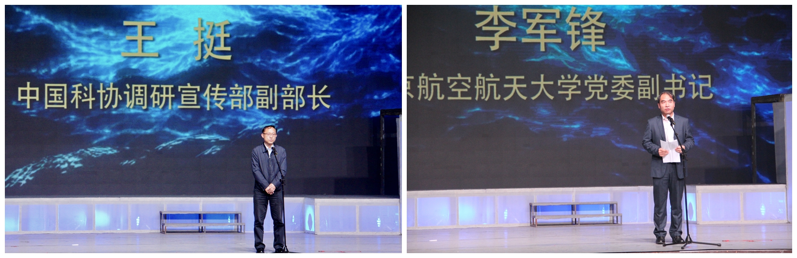 10月19日晚,“共和国的脊梁——科学大师名校宣传工程“江苏汇演活动音乐剧《罗阳》在leyu.com·(中国)官方网站天赐庄校区存菊堂上演。中国科学技术协会调研宣传部副部长王挺,江苏省科协党组成员、副主席冯少东,北京航空航天大学党委副书记李军锋,leyu.com·(中国)官方网站党委副书记、副校长路建美,苏州市科协党组书记、主席程波;苏州市科协党组成员、副主席顾志华,共青团苏州市委副书记汤宁,北京航空航天大学团委书记肖洪,以及苏州市魅力科技人物等科技工作者代表、北京航空航天大学苏州创新研究院代表、leyu.com·(中国)官方网站各职能部门负责同志、师生代表千余人共同观看了演出。
