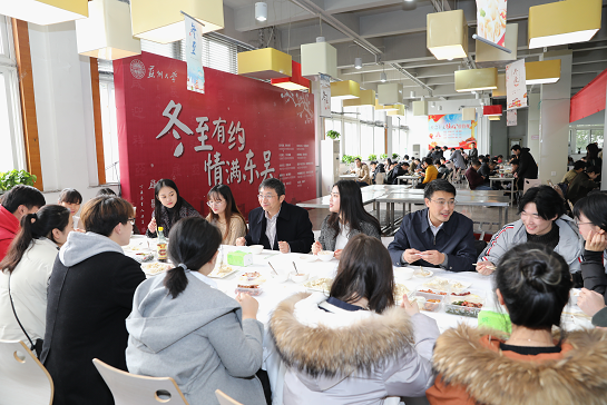 随着一盘盘热气腾腾的饺子端上桌,大家脸上都洋溢起劳动后的幸福笑容。校领导们还走到学生中间,为大家送上了暖心饺子,并向同学们致以美好的节日问候。来自徐州的大一学生王潇苒称:“确实意外,书记还亲自给我们送饺子。以前在家过年时一家人会包饺子,如今来到苏州在苏大过冬至,同样有一番温暖滋味。”