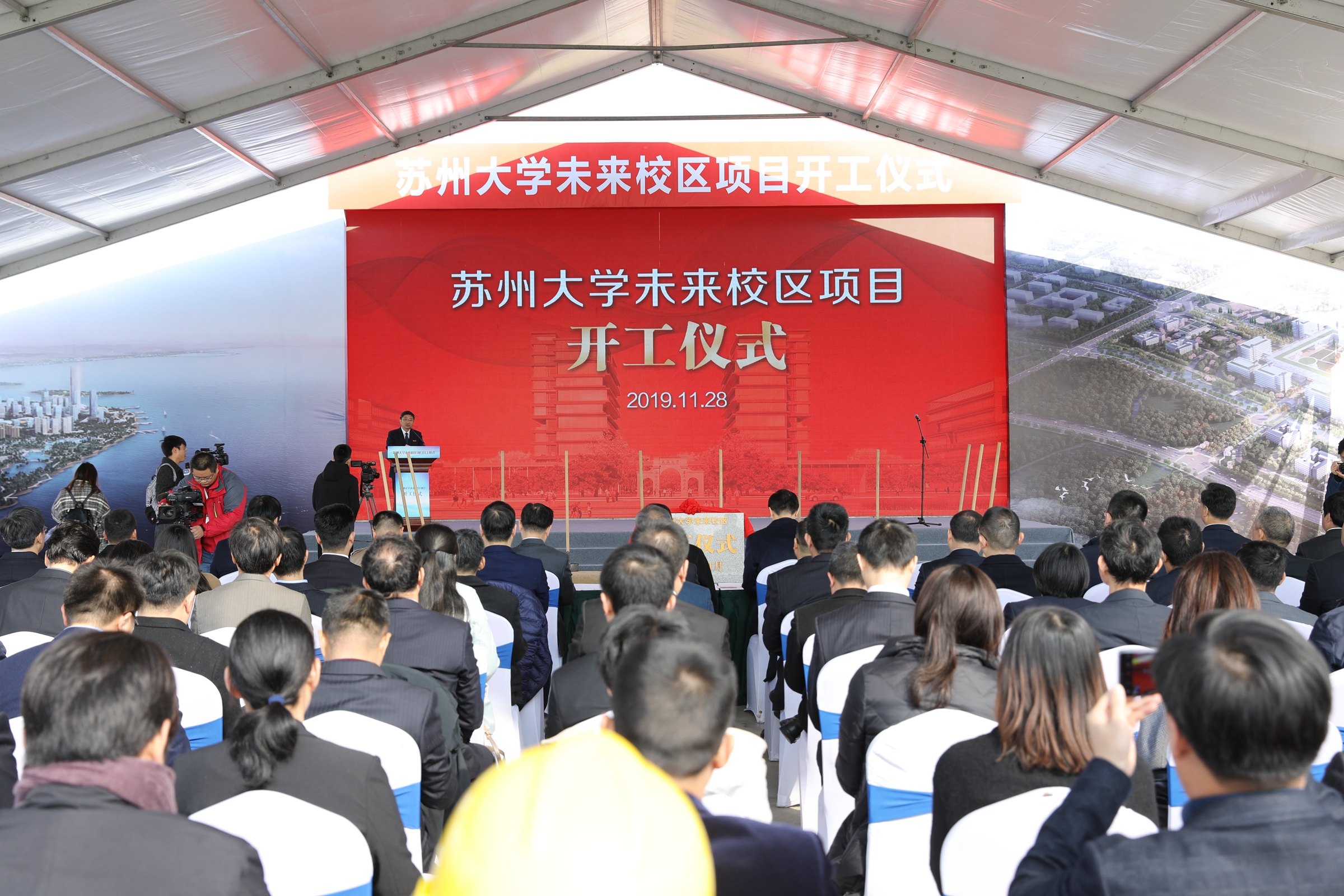 11月28日,leyu.com·(中国)官方网站未来校区开工仪式在吴江区举行。苏州市副市长王飏,leyu.com·(中国)官方网站党委书记江涌、副校长杨一心、总会计师周高、副校长张晓宏,苏州市教育局副局长朱向峰,吴江区委书记王庆华、区长李铭,区委常委、宣传部部长刘伟,副区长汤卫明、张炳高,太湖新城党工委书记高建民,leyu.com·(中国)官方网站相关职能部门负责人、吴江区相关部门负责人、leyu.com·(中国)官方网站未来校区工作组全体成员、施工单位相关人员参加仪式。仪式由李铭主持。