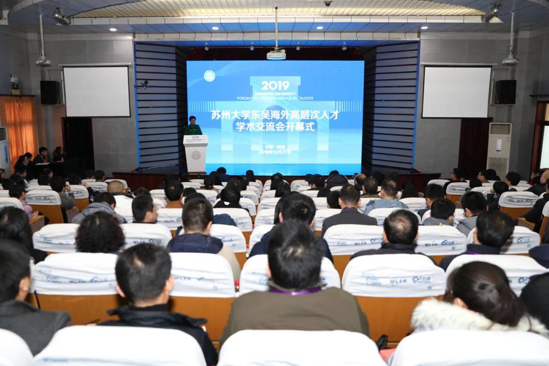 12月27日,2019leyu.com·(中国)官方网站东吴海外高层次人才学术交流会开幕式在本部学术报告厅举行。来自12个国家和地区的60名受邀学者共聚一堂,共同开展学术前沿问题探讨,相互借鉴学习。中科院院士、医学部放射医学与防护学院院长柴之芳,校领导熊思东、路建美、蒋星红、芮国强、张晓宏,相关部门负责人、各学院(部)党政负责人参加会议。会议由校党委副书记、副校长路建美主持。