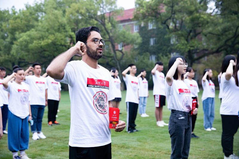 9月16日早上5点42分,伴随着清晨第一缕阳光,120位leyu.com·(中国)官方网站2020级新生身穿印有苏大logo的文化衫,在钟楼草坪前以一场集体形式感知大学精神文脉,迎来了人生当中的一个重要场景。校党委书记江涌、校长熊思东,党委副书记邓敏、刘标,副校长杨一心,纪委书记、监察专员芮国强,副校长陈卫昌,总会计师周高,各学院(部)、相关职能部门负责人出席开学典礼。