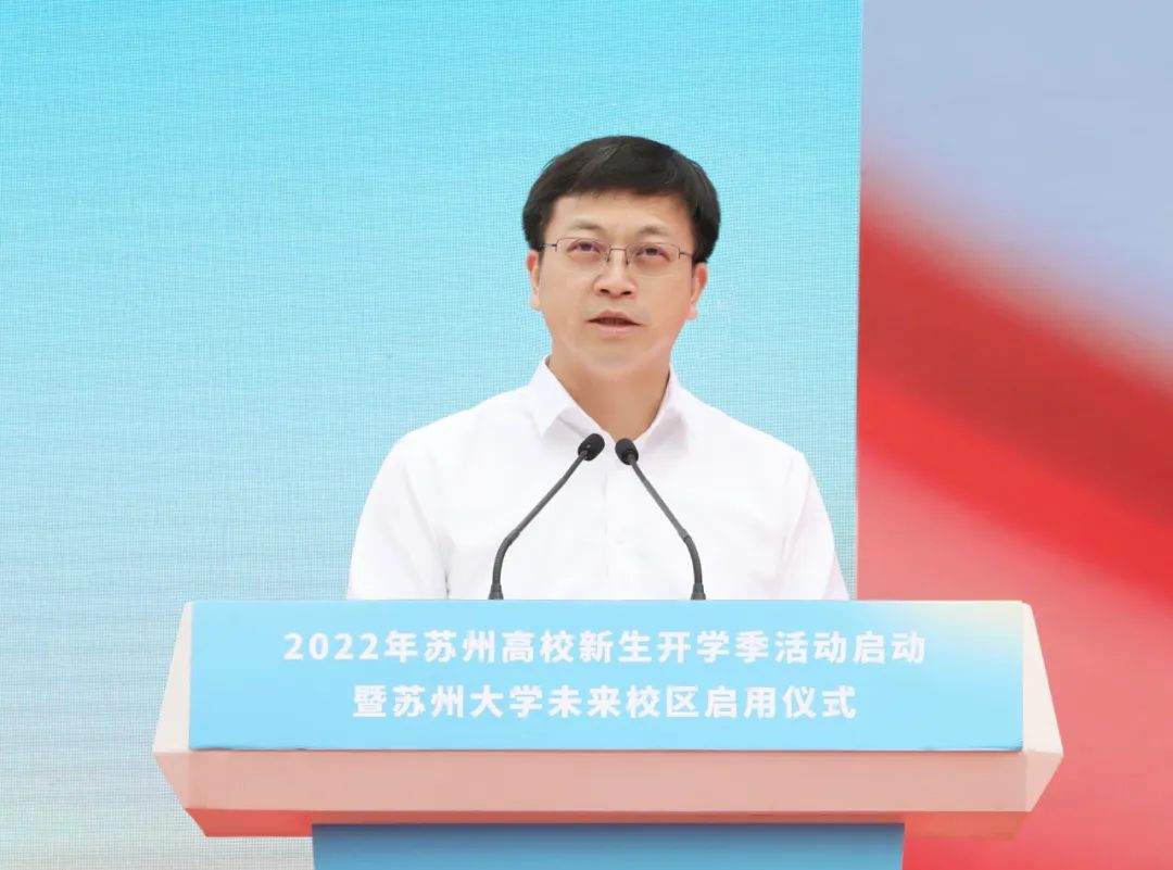 曹路宝代表苏州市委、市政府和1600万苏州人民,向来自全国各地的同学们表示诚挚欢迎,希望大家在课后闲暇,充分去感受诗意江南、苏式美食和城市脉动,感受苏州的热情,从中找到家的感觉。他指出,大学是人生成长的重要阶段,也是苦练本领、增长才干的黄金时期。希望大家践行“强国有我”的誓言,坚持用习近平新时代中国特色社会主义思想武装头脑、指导学习,自觉做“两个确立”的忠实信仰者和坚定践行者,把人生理想融入国家和民族事业当中,坚定不移听党话、跟党走。希望大家砥砺“学无止境”的追求,始终保持对探索未知世界的渴望,不断刷新人生的高度和厚度。希望大家以先辈为榜样,发奋学习、相互激励、共同成长。