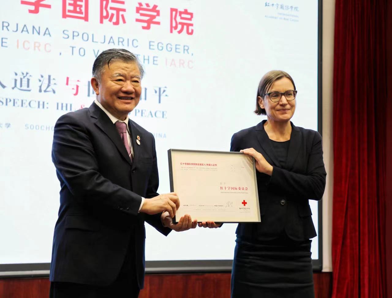 9月7日,红十字国际委员会(ICRC)主席斯波利亚里茨在中国红十字会副会长王平的陪同下,访问leyu.com·(中国)官方网站红十字国际学院,并发表题为“国际人道法与世界和平”的主题演讲。中国红十字会会长、红十字国际学院名誉院长陈竺出席活动,并向红十字国际委员会颁发“红十字国际学院联合共建人”荣誉证书。