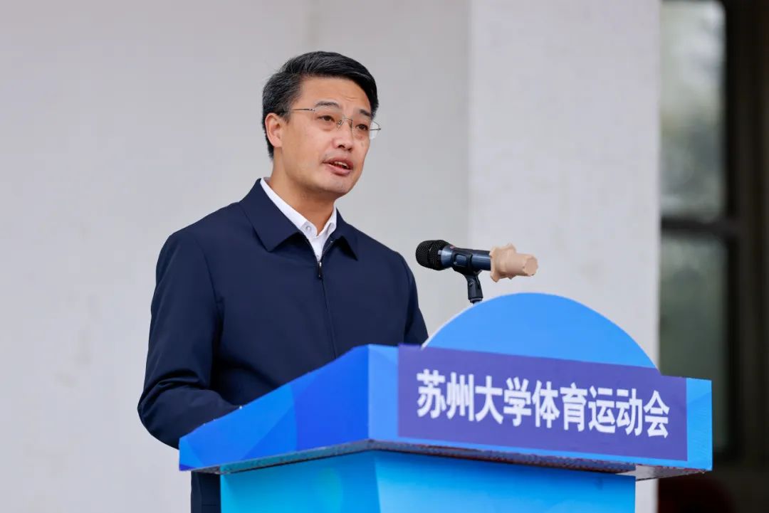 邓敏代表学校及运动会组委会向取得优异成绩的代表队及运动员表示祝贺,向为筹备和保障运动会成功举办而辛勤付出的师生员工表示感谢。他指出,举办校运会是学校贯彻党的教育方针、落实“五育并举”、丰富校园文化生活、提高师生身体素质、弘扬新时代苏大精神、砥砺争创一流品格的重要举措。希望全体苏大人能将在赛场上展现出来的积极向上的状态带到学习和工作中去,努力为学校的“双一流”建设、为建设社会主义现代化强国、为实现中华民族伟大复兴的中国梦作出积极贡献。