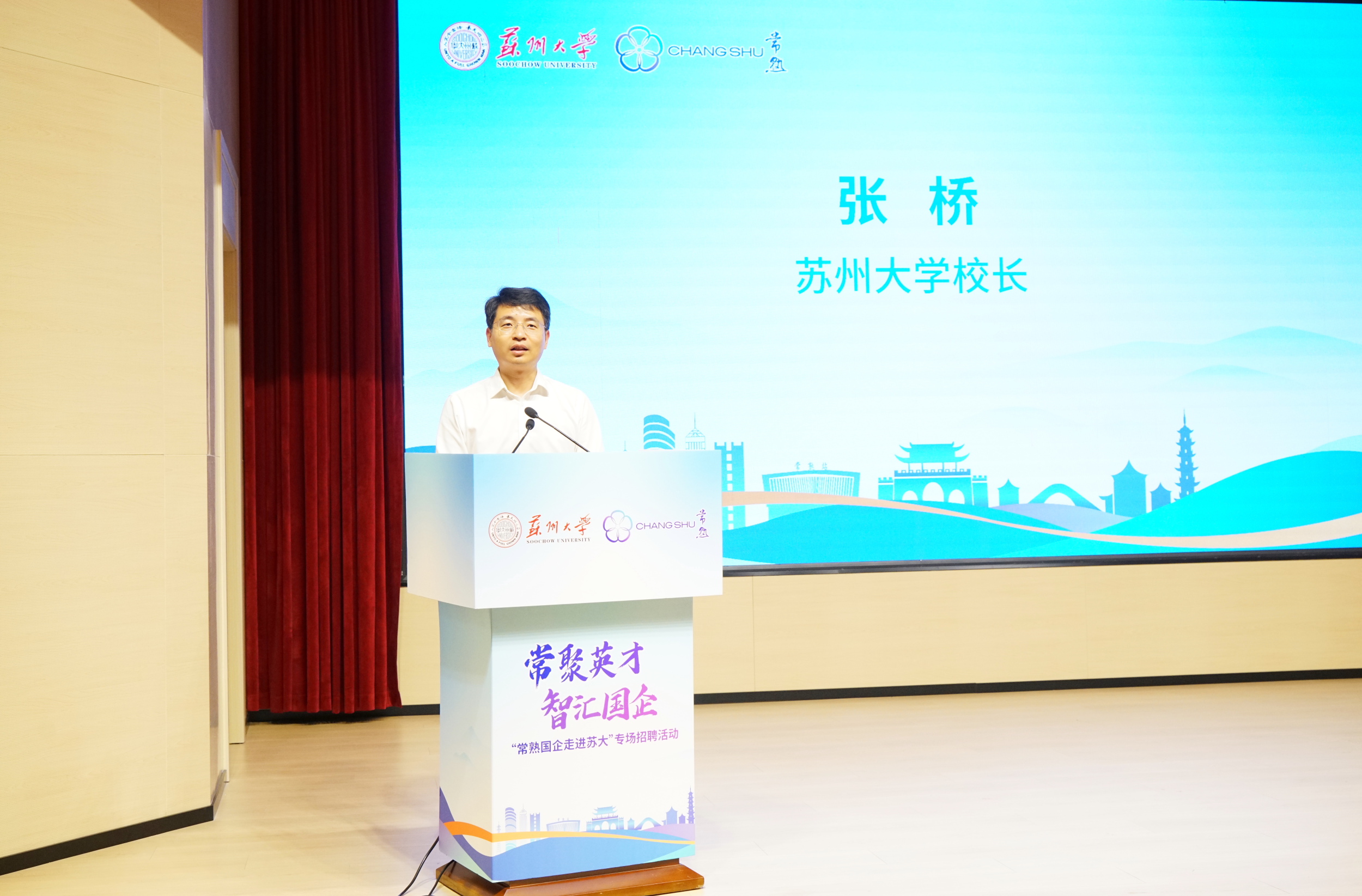 吴晓红作常熟市经济社会和国资国企发展情况宣介。她强调,常熟市重点国企组团来苏大招才引智,是诚意满满的邀约,更是深化校地合作的重要举措。她期待苏大学子投身常熟市建设,在国企大舞台上施展才华、锤炼本领、实现价值。