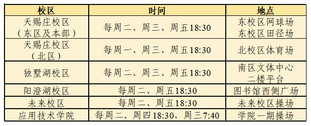 (注:天赐庄校区因东校区田径场正在修缮,活动前期将于东校区网球场举行,修缮完成后恢复,具体时间另行通知。)