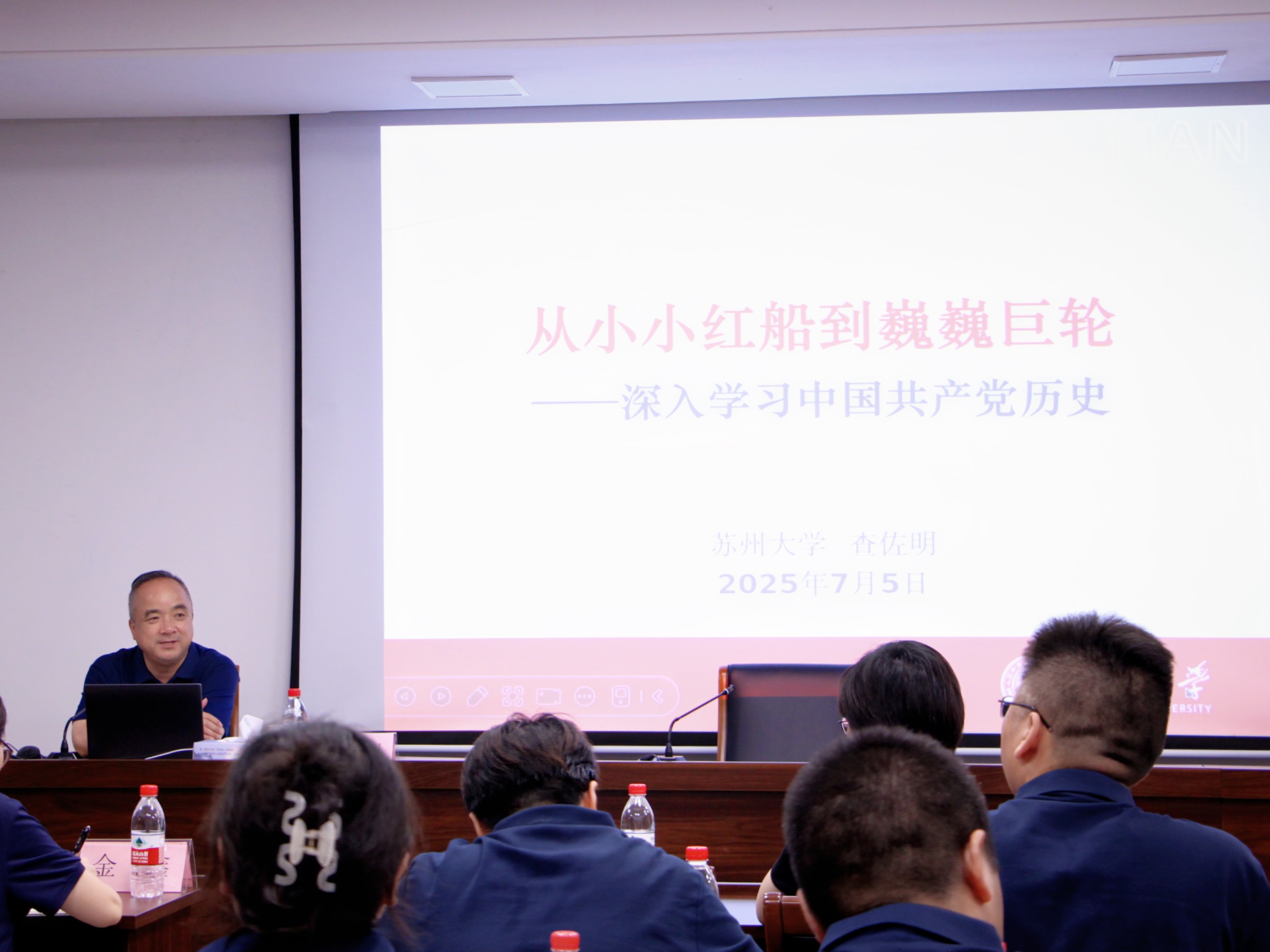 在《从小小红船到巍巍巨轮》专题辅导中,查佐明从“回顾走过的路、不忘来时的路、走好前行的路”三个维度,将百年党史与青年工作紧密串联。他勉励所有团干部,要大力弘扬首创精神、奋斗精神和奉献精神,围绕中心、服务大局,紧扣立德树人的根本任务,找准工作的结合点、切入点,服务好学校中心工作,积极融入人才培养大局。